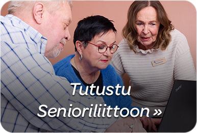 Sinua odottaa joukkoonsa vireä vuosia sitten 40-vuotisjuhlia viettänyt senioriyhdistys, jonka jäsenenä aikasi ei tule pitkäksi! Yhdistyksemme jäseninä on vajaat 200 senioria. Kokoonnumme kuukauden toinen keskiviikko klo 12 nuorisotalo Wilholassa. Juomme hyvät kahvit, vaihdamme kuulumisia ja saamme ajankohtaista tietoa eri alojen asiantuntijoilta. Jännitystäkin on aina luvassa, sillä arpajaiset ovat joka kerta ohjelmassa.