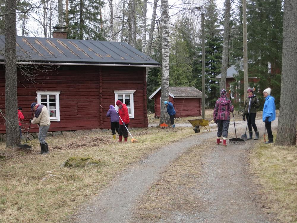 2.5.2022 Perinteinen museonmäen haravointikökkä pelimannituvalla parinkymmenen seniorin voimin