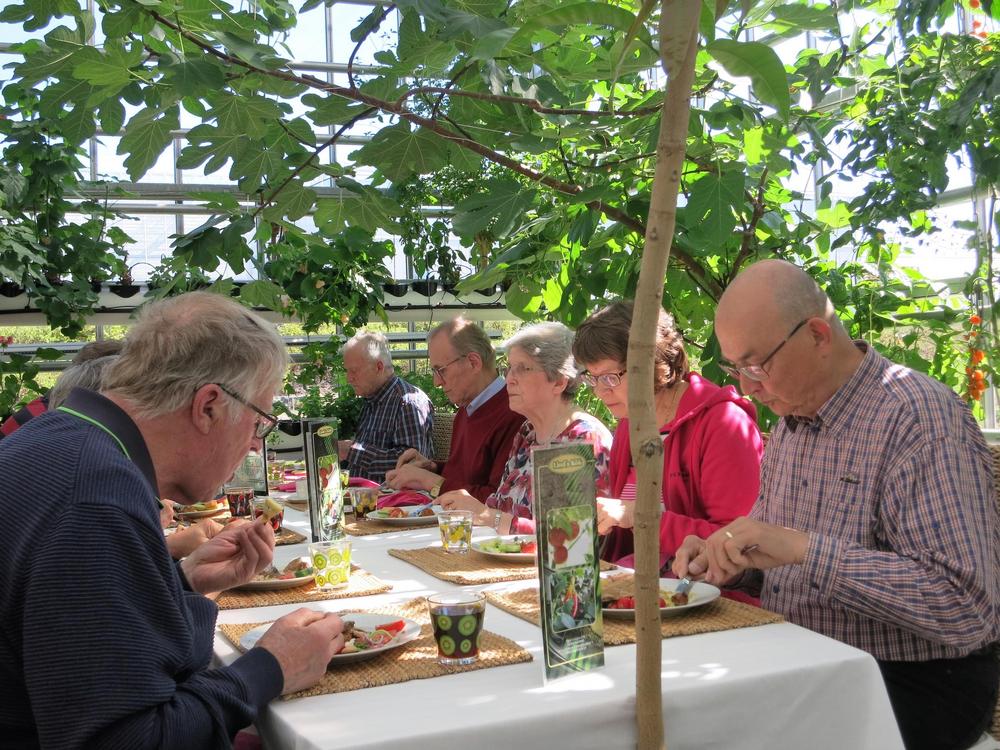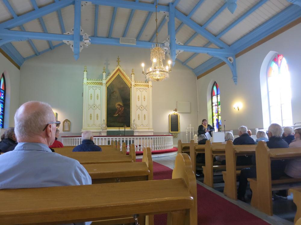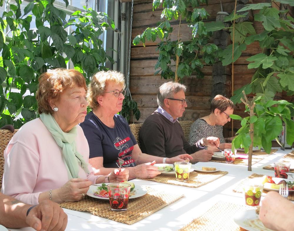 Retki suuntautui kohti rannikkoa. Tulimme ensin Teuvalle ja menimme keskustan läpi 1950-luvun alussa palaneen kirkon paikalle tehtyyn uuteen betoniseen kirkkoon. Ex-seniorimme Matti Toivakan äidin isä sittemmin mm. ministerinä ja arkkipiispana toiminut Lauri Ingman oli ollut 30-luvulla Teuvan kirkkoherrana. Alttaritaulu on Tove Janssonin maalaama vuodelta 1953. Matka jatkui kohti Karijokea, jonka kirkon näimme ulkoapäin. Suunnittelija ja rakentaja oli sama kuin Jalasjärven kirkolla eli Salomon Köykkä (Köhlström), mutta koko vain kolmasosa. Jatkettiin kohti rannikkoa ohi Susiluolan ja Pyhävuoren ja kävimme Lappväärtissä kahvilla. Ohitimme Kristiinankaupungin ja kiersimme pienen pääosin puutalorakenteisen Kaskisten kaupungin keskustan aivan meren rannan kautta ja jatkoimme Närpiöön. Närpiön kirkko on vanha 1500-luvun puolivälissä valmistunut ja vihkijänä oli silloinen arkkipiispa Mikael Agricola. Kirkon vieressä on vieläkin pitkä rivi vanhoja hevostalleja. Jatkoimme Närpiön keskustan läpi pohjoiseen. Seudulla näimme runsaasti suuria kasvihuoneita sekä monia tuulivoimapuistoja. Kierroksen jälkeen päädyimme ruokapaikkaamme, joka oli kasvihuoneen yhteydessä oleva ravintola Lind´s Kök. Rauhallisen ruokailun jälkeen palasimme kotiin.