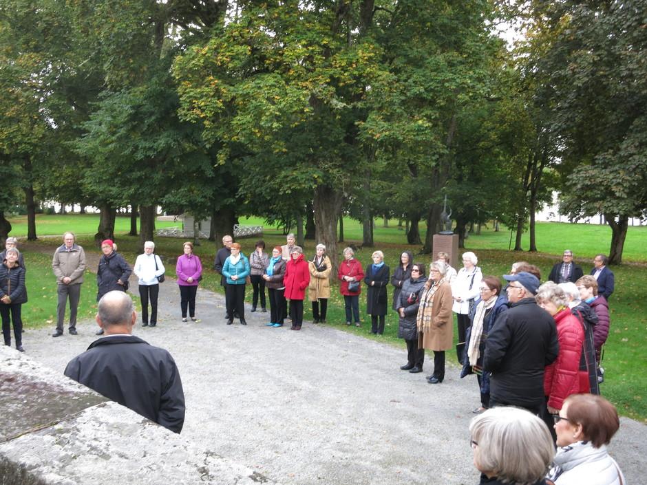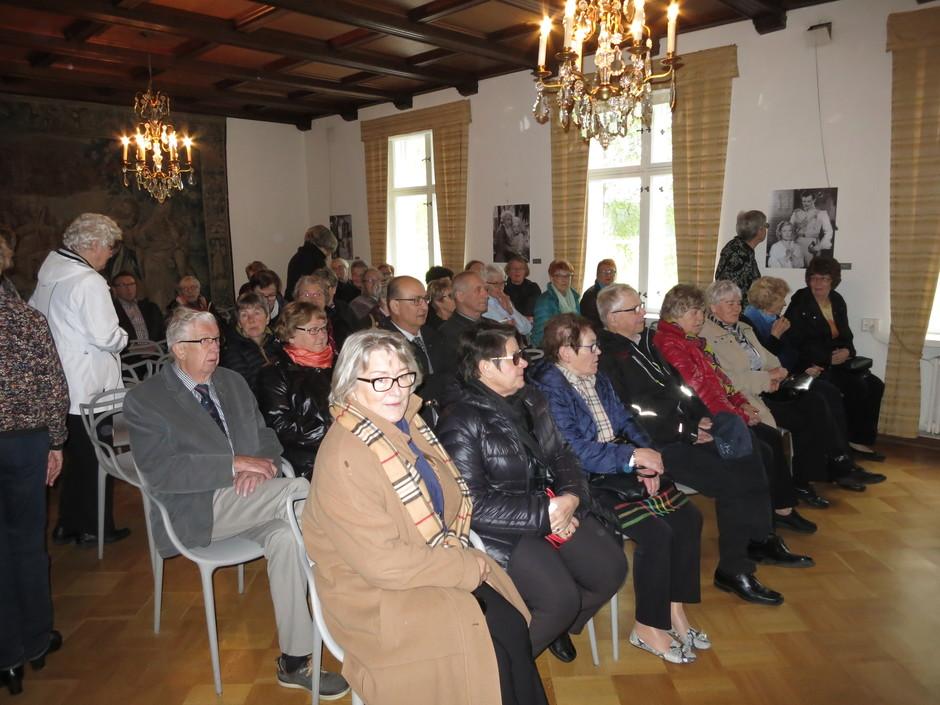 kartanon yläsalissa kuuntelemassa Liisa Lagerstamin esitystä kartanon historiasta. Mm. Elias Lönnrot oli täällä 1840-luvulla kotiopettajana ja viimeisteli samalla Kalevalaa